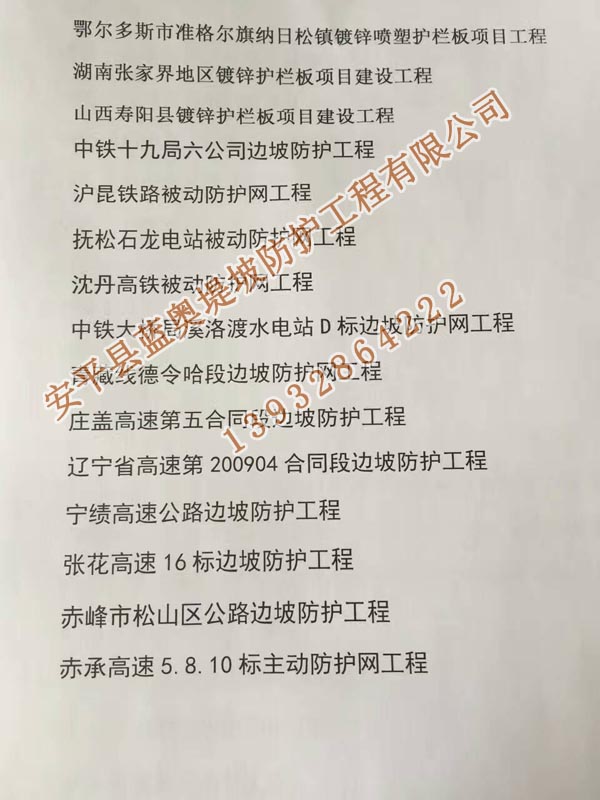 邊坡防護(hù)網(wǎng)部分工程業(yè)績(jī)一覽