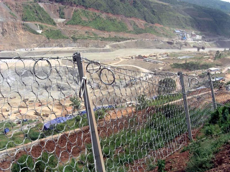 鋼繩網(wǎng)山體防落石網(wǎng)系統(tǒng)的特點(diǎn)在于:強(qiáng)度足以吸收和分散傳遞預(yù)計(jì)的落石沖擊動(dòng)能,消能環(huán)的設(shè)計(jì)和采用使系統(tǒng)的抗沖擊能力得到進(jìn)一步提高。與剛性攔截和砌漿擋墻相比:改變了原有施工工藝。使工期和資金得到減少。